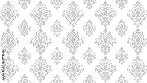 Subtle grey damask pattern with a classic paisley motif on white background , background texture, vintage