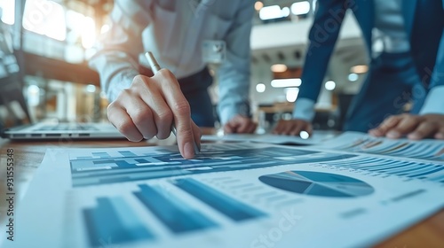 Successful business professionals presenting analytical report working together in corporate office : Generative AI