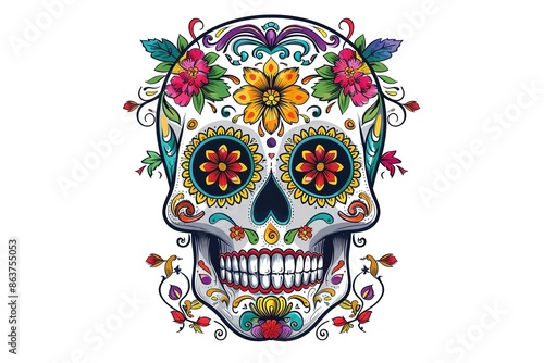 Sugar Skulls. Day of the Dead Skull, isolated on white background. Dia de los Muertos. Mexican sugar skull. Design element for logo, emblem, sign, poster, card, banner. Vector illustration. Color