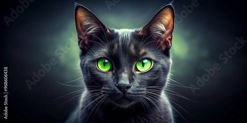 Sultry and sinister, this feline with gleaming green eyes and pointed ears lurks in the shadows, awaiting unsuspecting