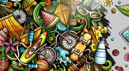 Summer hand drawn doodle banner. Cartoon vector detailed flyer.
