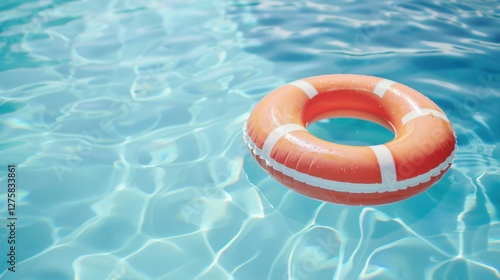 Summer's Splash: A Colorful Ring Float in a Serene Blue Pool