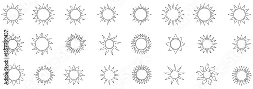 Sun icons set. Sun weather symbol collection. Sunshine, sunlight, sunburst icon set. Vector icons. background white. Design EPS 10