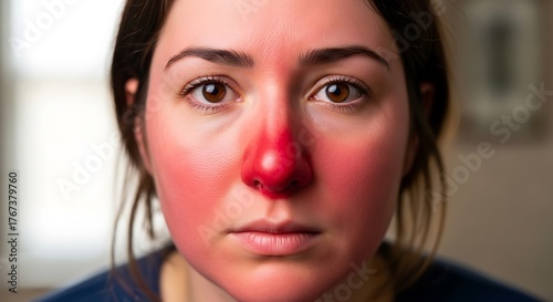 Sunburnt Face - A Close-Up of Severe Sunburn on a Womans Face.