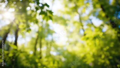 Sunlight pierces the leafy canopy, creating a blurred landscape of verdant green and illuminating nature's beauty