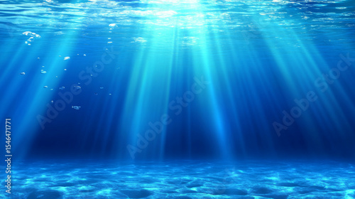 Sunlight rays in a clear underwater or lake bottom, dreamy and beautiful background
