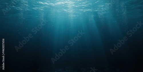 Sunlight streams down into a deep ocean, illuminating dark columns of water
