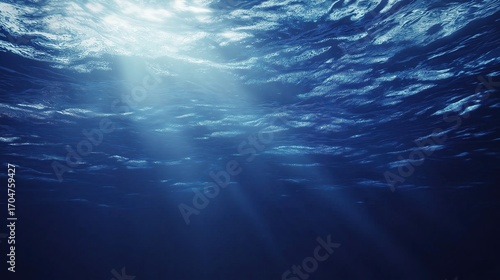 Sunlight streams through ocean waves, creating a mesmerizing play of light and shadow in deep blue waters.