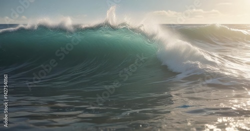 Sunlit abstract ocean, dynamic waves, frothy surf, ocean, digital, foam