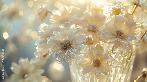 Sunlit field of white daisies in soft focus