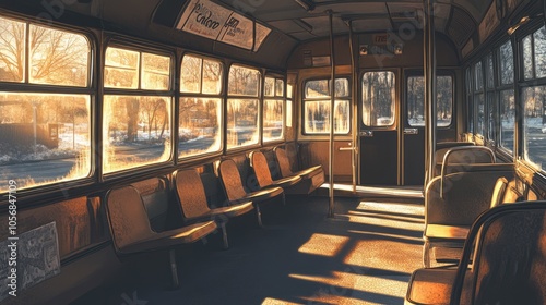 Sunlit Interior of an Empty School Bus
