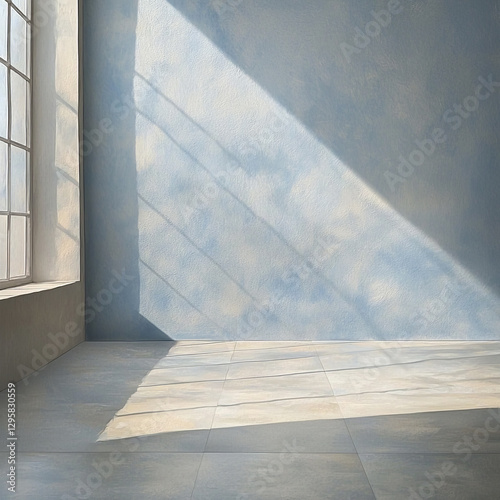Sunlit Room: Blue Wall, Tiled Floor