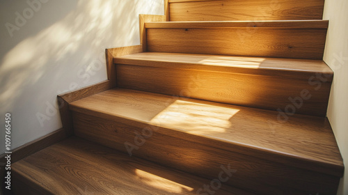 Sunlit wooden stairs gracefully ascending within a cozy home radiate warmth and comfort inviting one to rise upward symbolizing progress hope and the welcoming embrace of a familiar living space