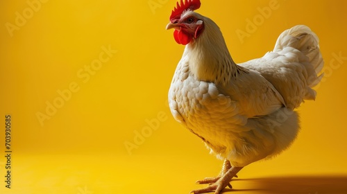 Sunny Delight, Majestic Fowl Posing Amidst Golden Hues on a Vibrant Canvas
