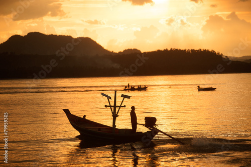 Sunset at traditional fishing boat in Koh Phitak island.