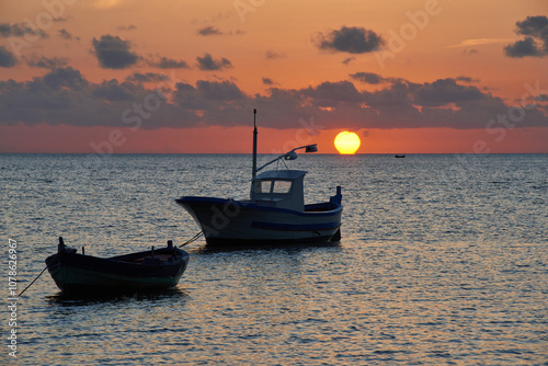 sunset time on the Stagnone of Marsala, in Sicily in the province of Trapani