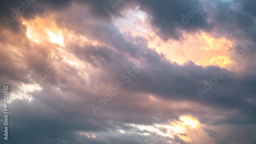Sunset with heavy pink and orange clouds in the sky