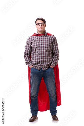 Super hero wearing red cloak on white