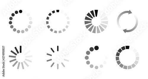 Super set different load icon. Circle website buffer loader or preloader. Download or upload status icon