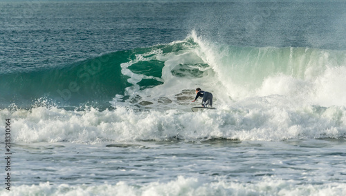 Surfer closing in on barrel, Fistral, Newquay, Cornwall