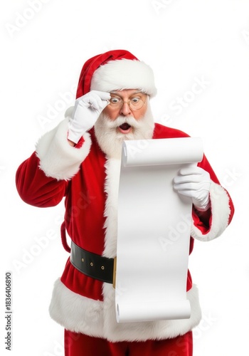 Surprised Santa Claus Reading a Long Wish List