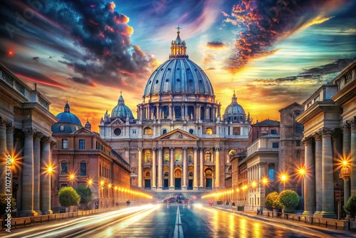 Surreal Exploration of St Peter's Basilica Interior in Rome, Italy – Architectural Marvels and Heavenly Imagery