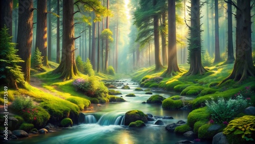 Surreal Springtime Pine Trees: Dreamlike Forest Landscape