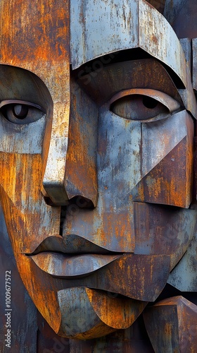 Surrealist Art, Rusty Scrap Metal Sculpture, Human Face and Body, Abstract Image, Texture, Pattern Background, Wallpaper, Smartphone Cover and Screen, PC, Laptop, 9:16 and 16:9 Format