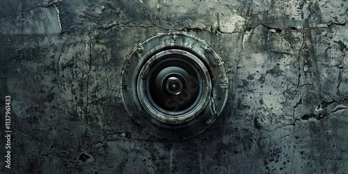 Surveillance Camera in Cracked Concrete Wall