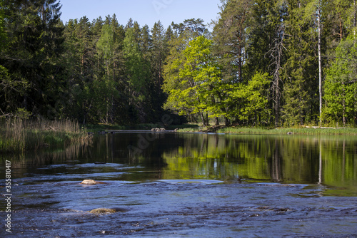 Swedish river and natural salmon area in spring. Farnebofjarden national park in north of Sweden.