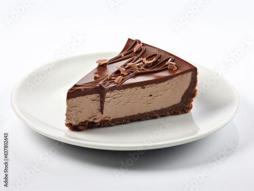 Sweet delicious chocolate cheesecake on a plate on a white background