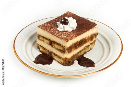 Sweet Italian Layered Tiramisu Cake on Dessert Plate