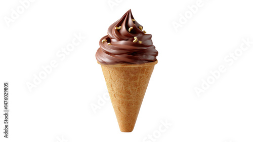 Sweet Spiral: Delightful close-up of a chocolate soft serve ice cream cone, swirls elegantly atop a crispy wafer cone