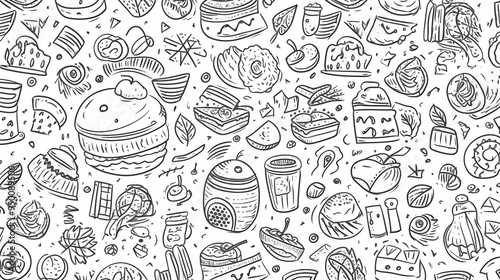 Sweets and fruits as background in 2D illustration.