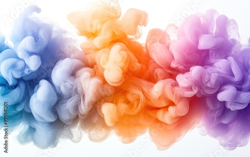 Swirling clouds of vibrant smoke exhibit a blend of blue, orange, and pink colors