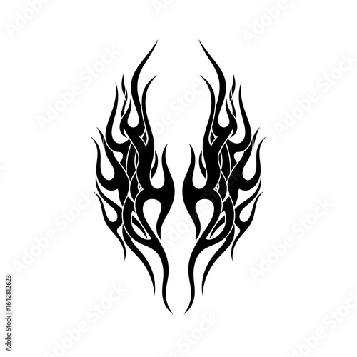 Symmetrical Tribal Flame Tattoo Design.