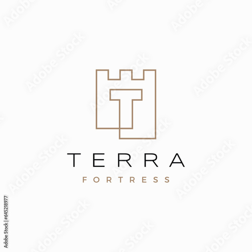 t Letter Castle Fortress Logo Outline Vector Icon Illustration