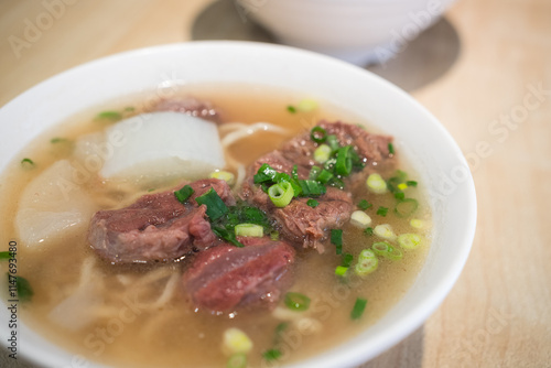 Taiwan beef noodle soup with clear broth