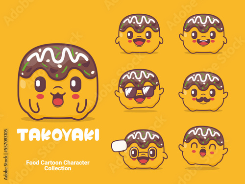 takoyaki cartoon. vector illustration with different expressions