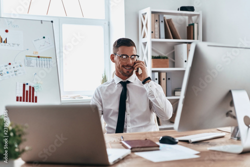 Talking with client.
