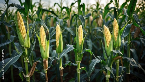 Tall corn stalks adorned with green foliage and brown-tipped ends.
