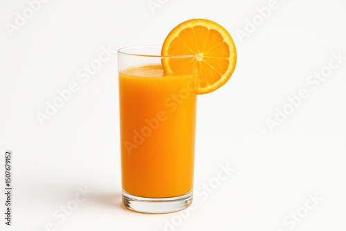 Tall Glass of Freshly Squeezed Orange Juice with a Slice of Orange Garnish Isolated on a Clean White Background Refreshing Drink