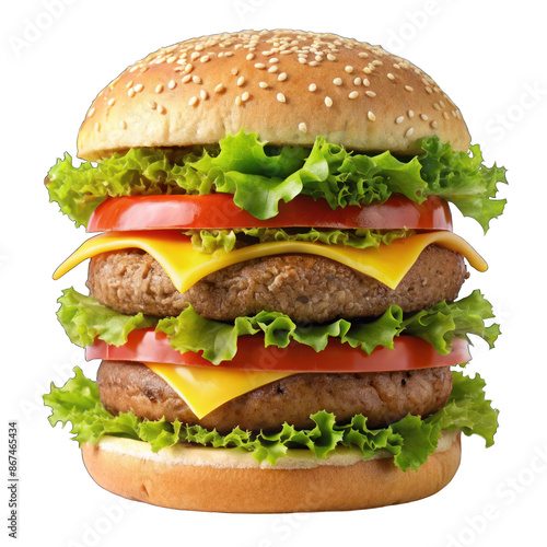 Tall hamburger isolated on transparent background