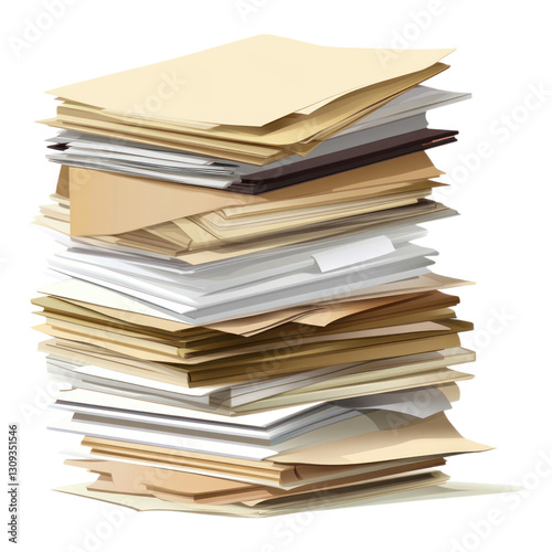 tall stack of assorted office documents and paperwork in pile