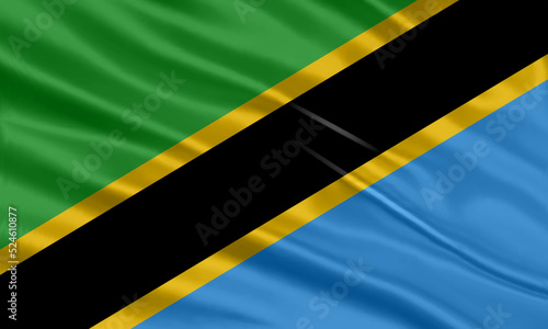 Tanzania flag design. Waving Tanzanian flag made of satin or silk fabric. Vector Illustration.
