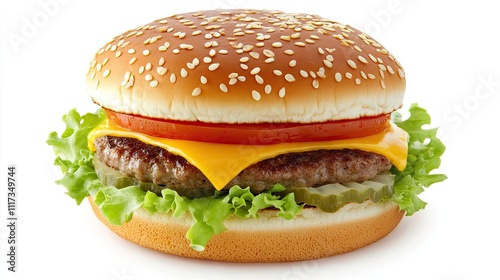 Tasty and delicious cheeseburger with a crunchy texture, featuring fresh ingredients for an appetizing meal. This cheeseburger is perfect for food lovers, with ample copy space.