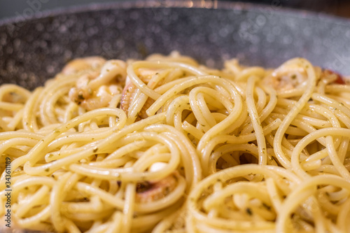 tasty and delicious spaghetti with seafood