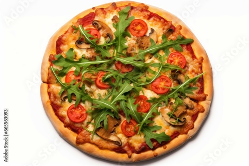Tasty pizza with vegetables and arugula salad. Snack dinner meal fresh food. Generate Ai