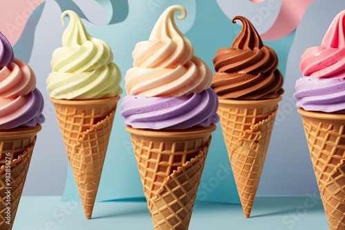 Tasty Yogurt Ice Cream Twirls in Waffle Cones on See-Through Background Cutout for Graphic Design Mockups