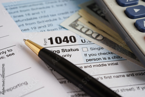 Tax form 1040 U.S. Individual Income Tax Return, business finance concept.